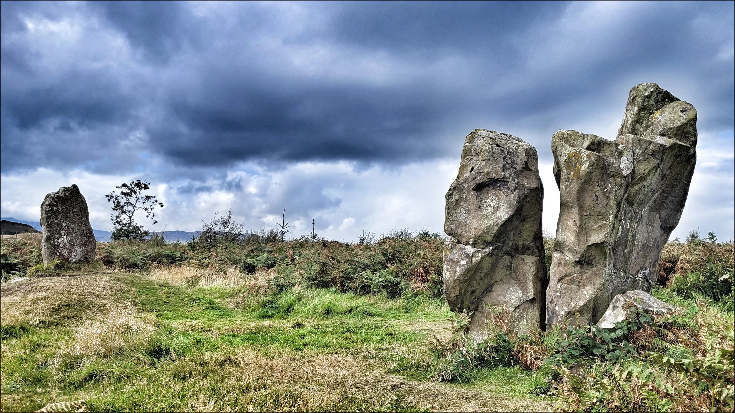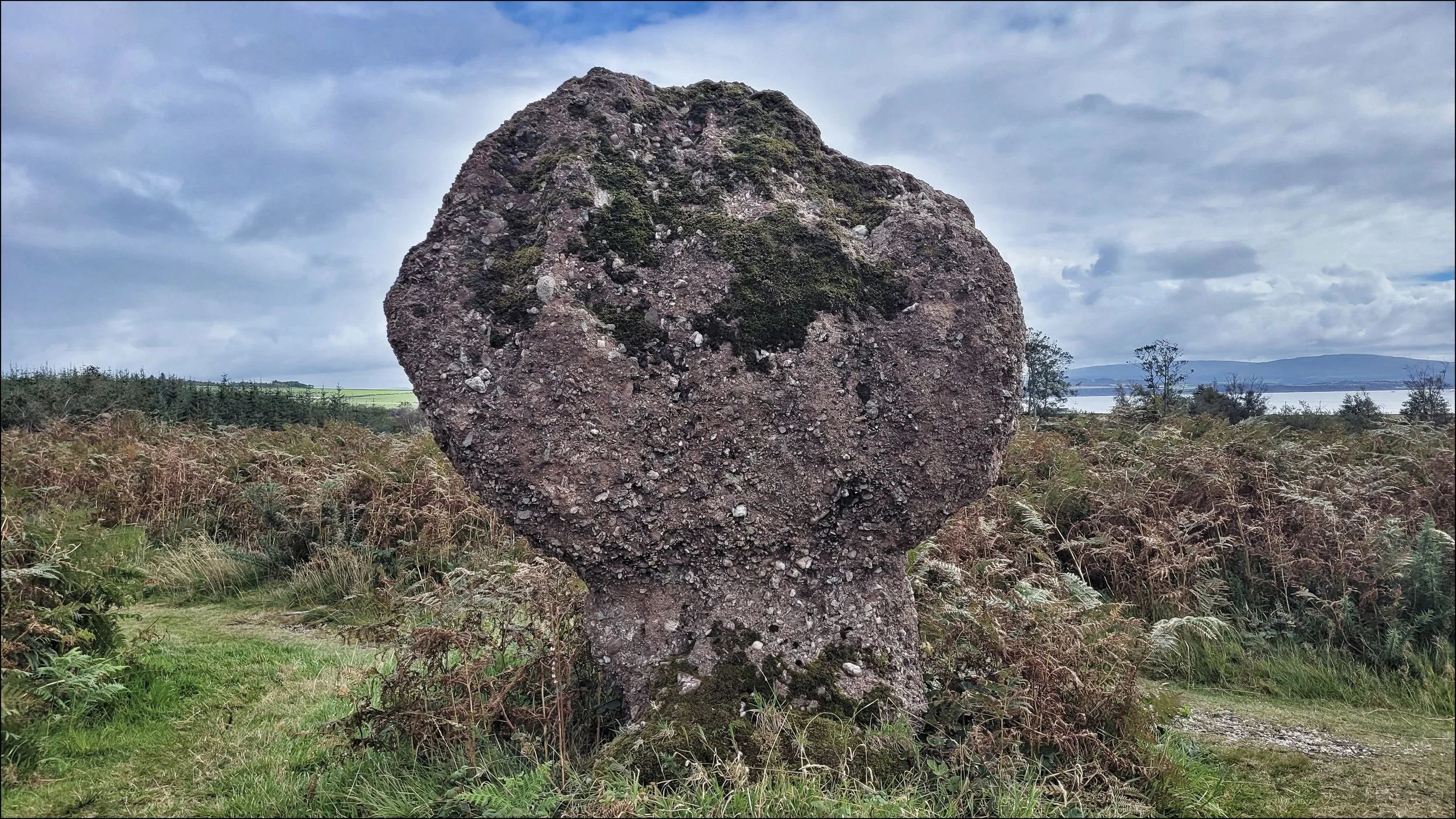 Like the first stone the third one was conglomerate and stood on a mound with grass covered packing stones. It had been damaged and subsequently restored in the 1970’s.