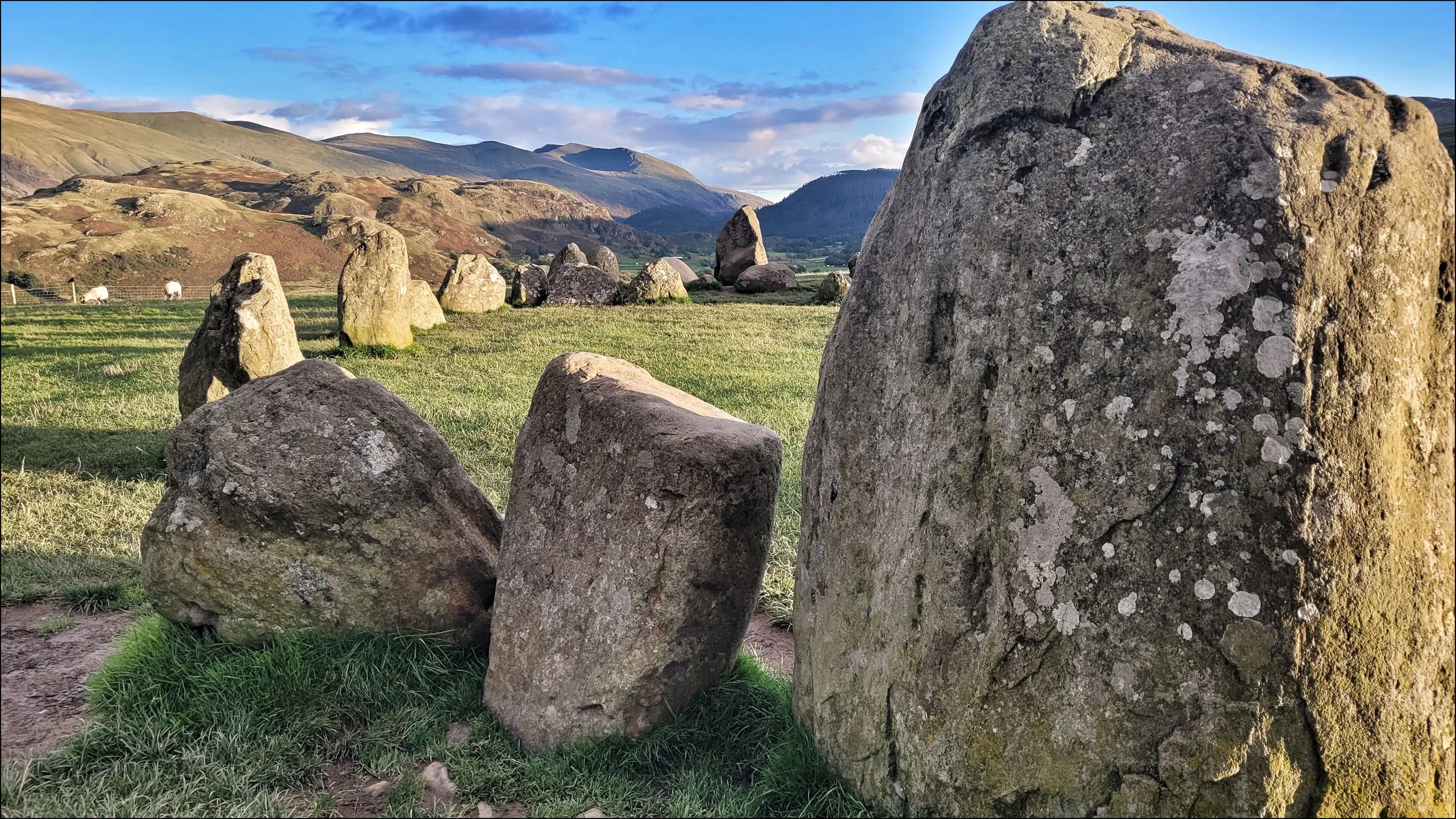 A drive down the A66 from Penrith brings you to Keswick in the northern part of the Lakes, and just before the town in the foothills of the fells a beautiful and magical stone circle awaits. It has arguably, the best scenic backdrop in the country with the mountains of Blencathra and Skiddaw to the north , Matterdale to the east and Helvellyn to the south. As a result the visitor numbers are high for most of the year. It was the Autumn Equinox and we expected Castlerigg to be busy.