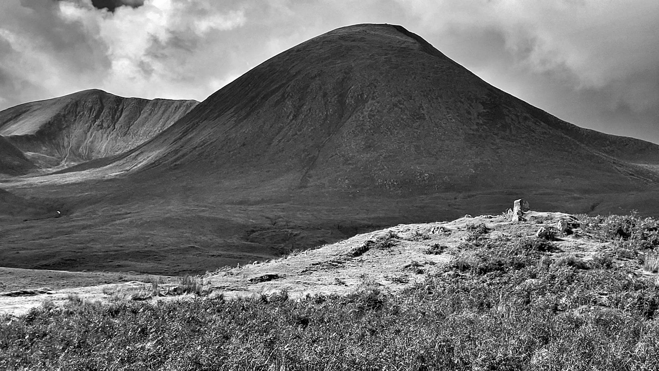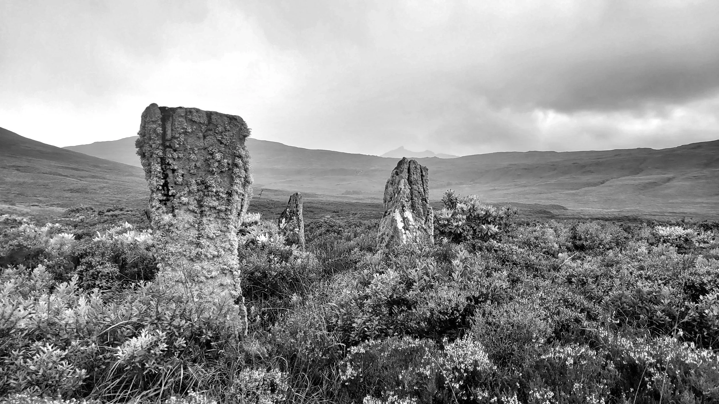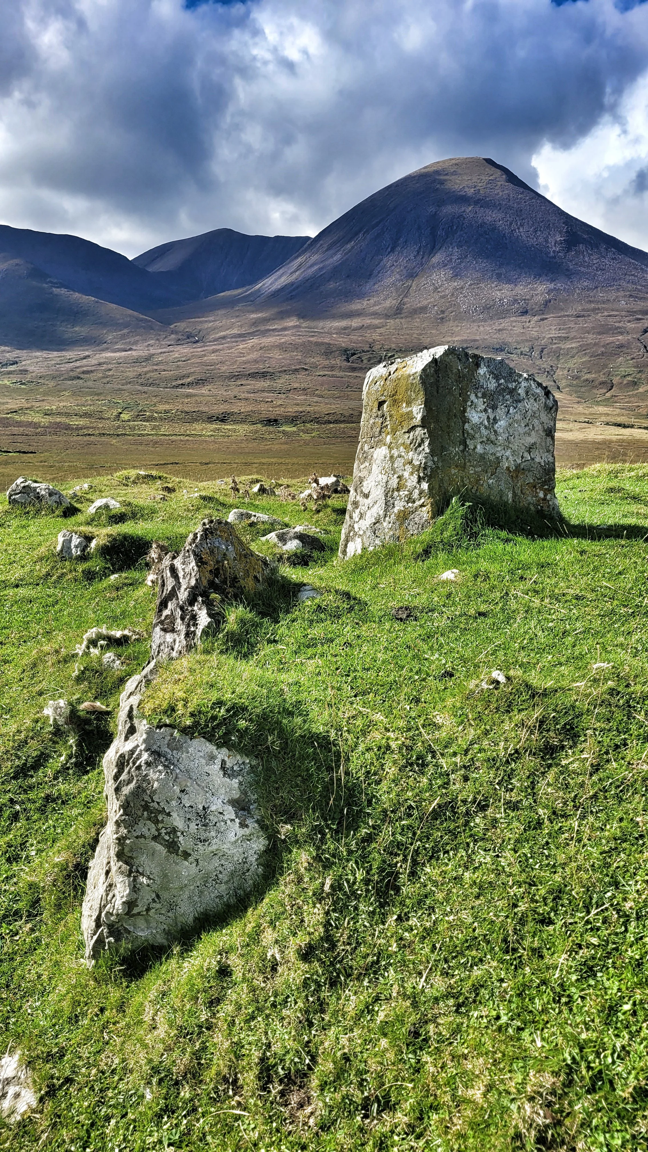 Folklore plays a role in the history of Neolithic and Bronze Age sites, adding mystery and superstition for those with imagination and the need for explanation. Suardal is no exception and is known locally as 'Hill of the Fairies'. This large cairn is sited in the shadow and grandeur of the Cuillin Mountains.