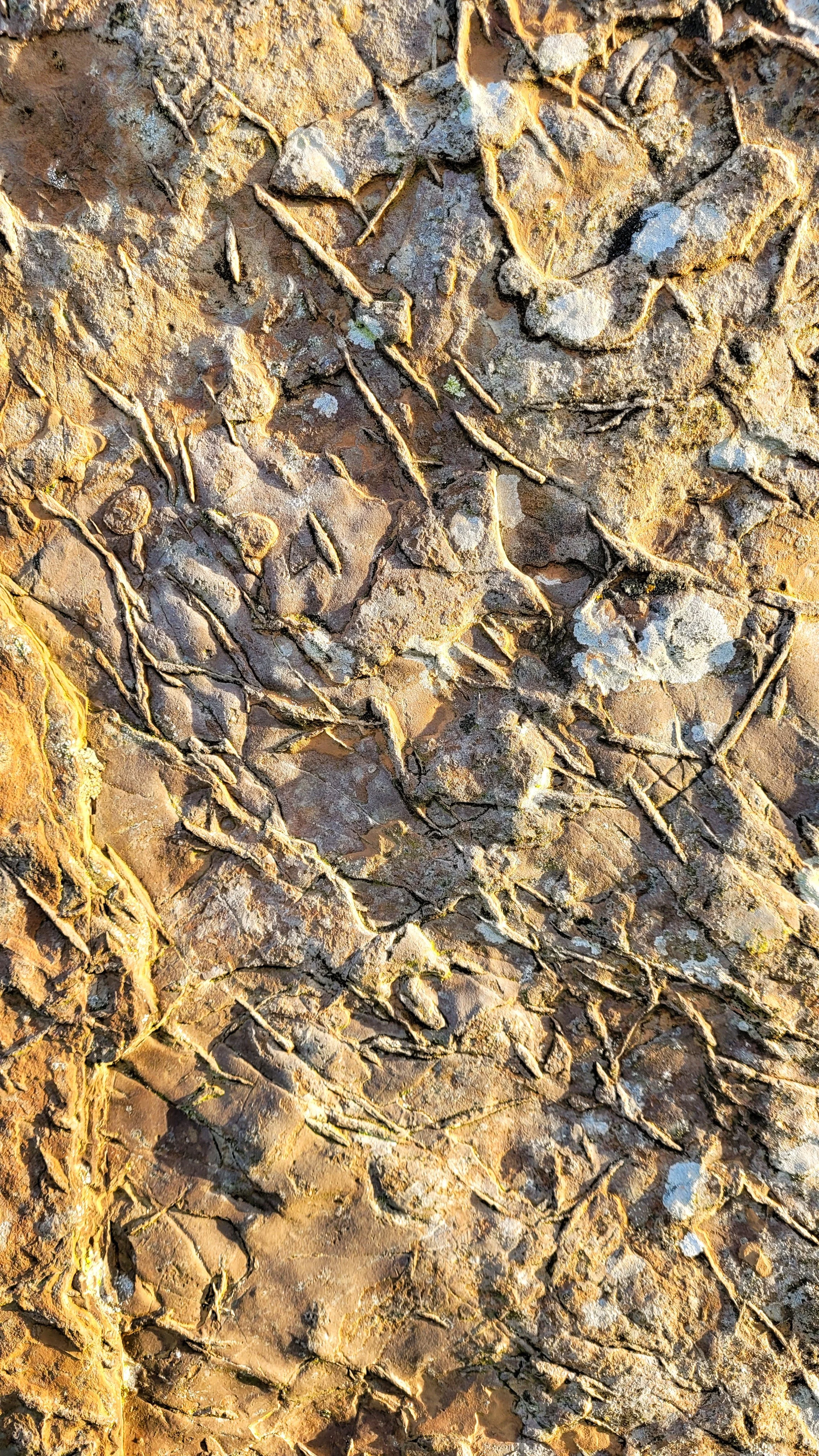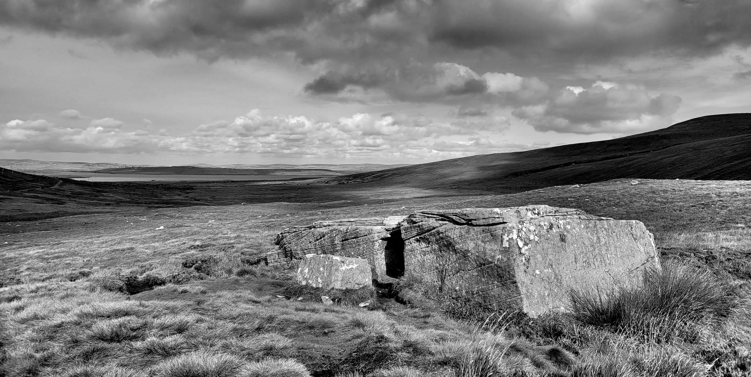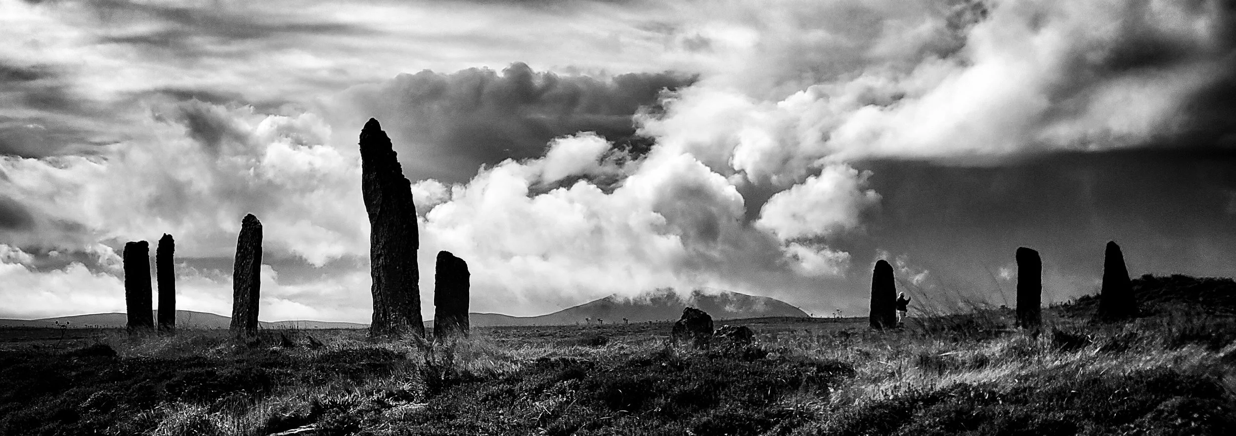 Elevated and inclined on the Ness of Brodgar, this ring of sixty stones sits within a henge one hundred and five metres in diameter. It is thought the stones were quarried from different locations around Orkney which has given contrasting shapes and colours on the rough inward-facing surfaces. Different minerals within the stones, along with their spacing and exposure to the elements, has created a variety of weathering and lichen growth within this one circle.