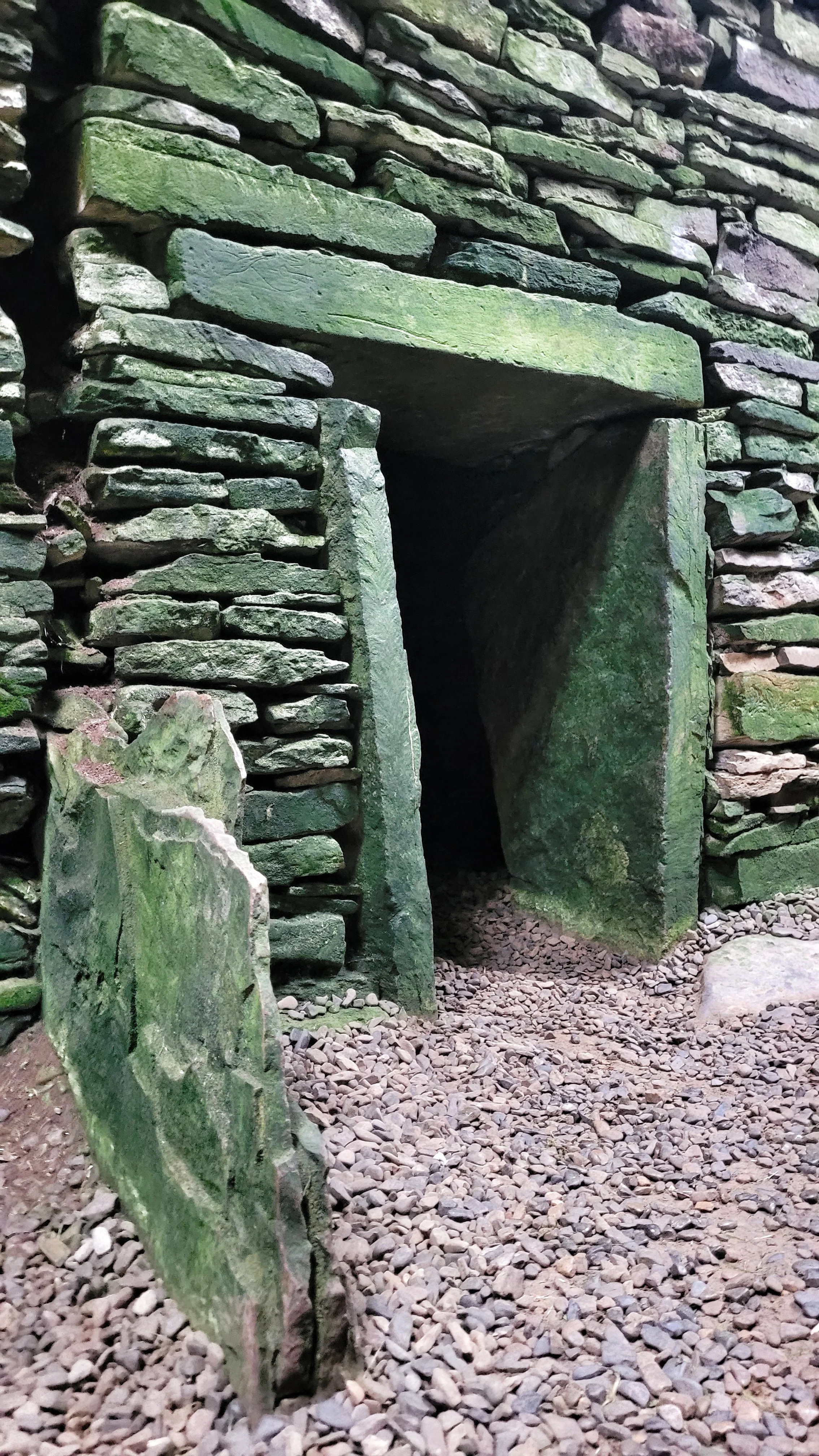 In 1884, along with human remains and flint tools, a large quantity of pottery fragments were discovered here, which prompted the generic term 'Unstan ware'. In recent years, the cairn has been given a skylight roof which enables the visitor to fully appreciate the character of the interior. It remains to be seen how the increased light level will alter the coloration of the stone after five thousand years of darkness.